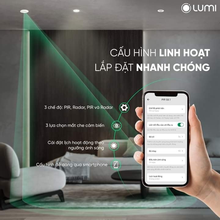 - Chế độ PIR và Radar: Tận dụng ưu điểm của 2 công nghệ cảm biến, đem lại tiện nghi vượt trội